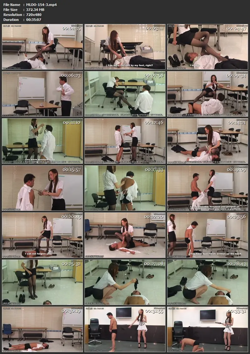 MLDO-154 - Mistress Risa A foot fetish masochistic man dominated by a leggy beauty OL Risa Mistress Mini Skirt Kick Gold Impressions